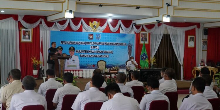 Wakil Bupati Hulu Sungai Selatan Syamsuri Arsyad, S.AP ,MA membuka secara resmi kegiatan Reviu Capaian Laporan Penyelenggaraan Pemerintah Daerah (LPPD) Kabupaten Hulu Sungai Selatan tahun anggaran 2021 bertempat di Pendopo Bupati. Rabu (27/07).