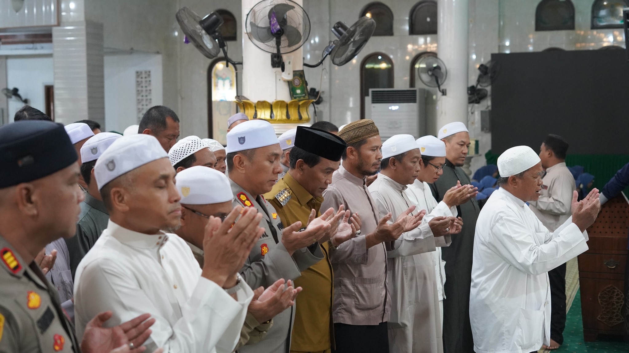 Bupati Hulu Sungai Selatan (HSS) H. Syafrudin Noor, SE., S.Sos bersama Ketua TP PKK Kabupaten HSS Hj. Mustaidah Syafrudin Noor melaksanakan takziah atas wafatnya Al Habib Muhammad bin Abdullah bin Sholeh Al Muhdhar Al Makky Al Haram Al Husaini, Senin (12/01/2026).
