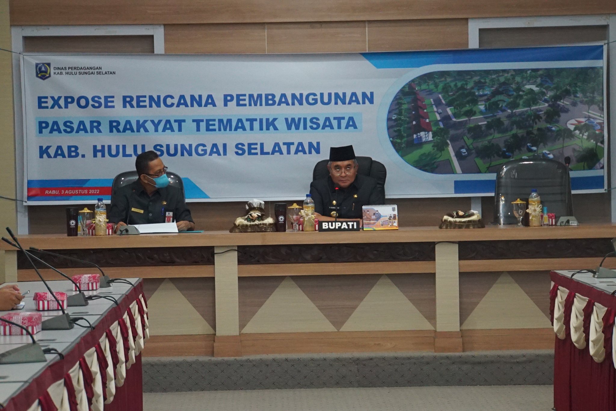 Di hadapan Bupati Hulu Sungai Selatan (HSS) dan beberapa Kepala Perangkat Daerah lainnya, siang ini Dinas Perdagangan mengekspose Rencana Pembangunan Pasar Rakyat Tematik Wisata. Ekspose langsung dilakukan oleh Kepala Dinas Perdagangan, Sudiono, SE didampingi jajaran, bertempat di Aula Rakat Mufakat Sekretariat Daerah. (Rabu, 03/08).