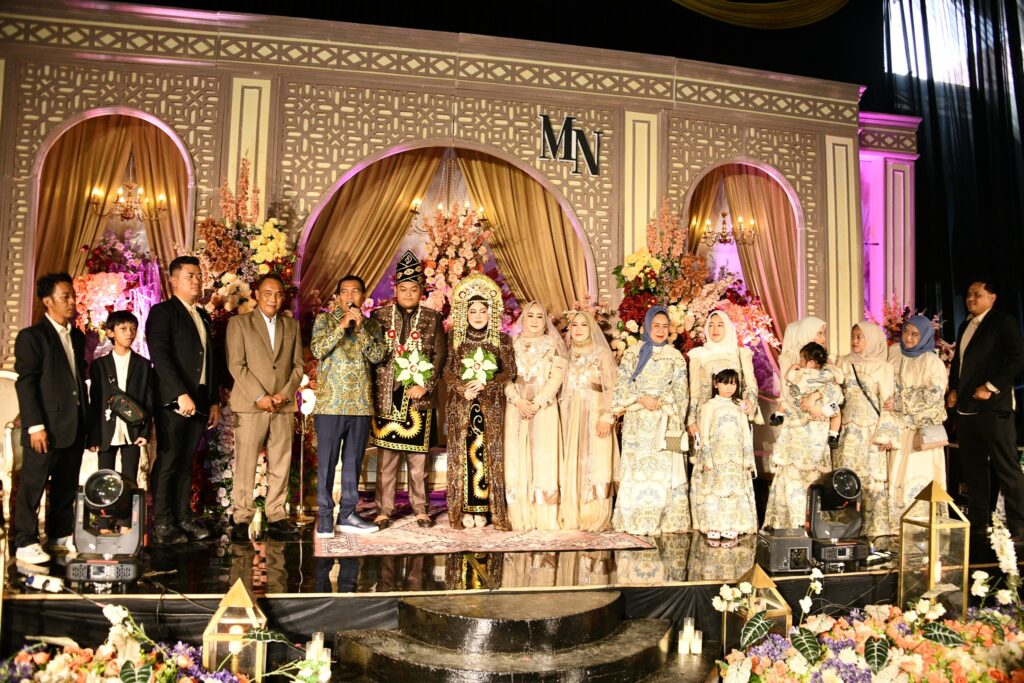 Resepsi pernikahan berlangsung dengan khidmat dan penuh kehangatan, dihadiri oleh keluarga besar kedua mempelai, tokoh masyarakat, serta para tamu undangan dari berbagai kalangan. Suasana kebersamaan dan kekeluargaan terasa kental, mencerminkan kebahagiaan yang menyertai hari istimewa kedua mempelai.
