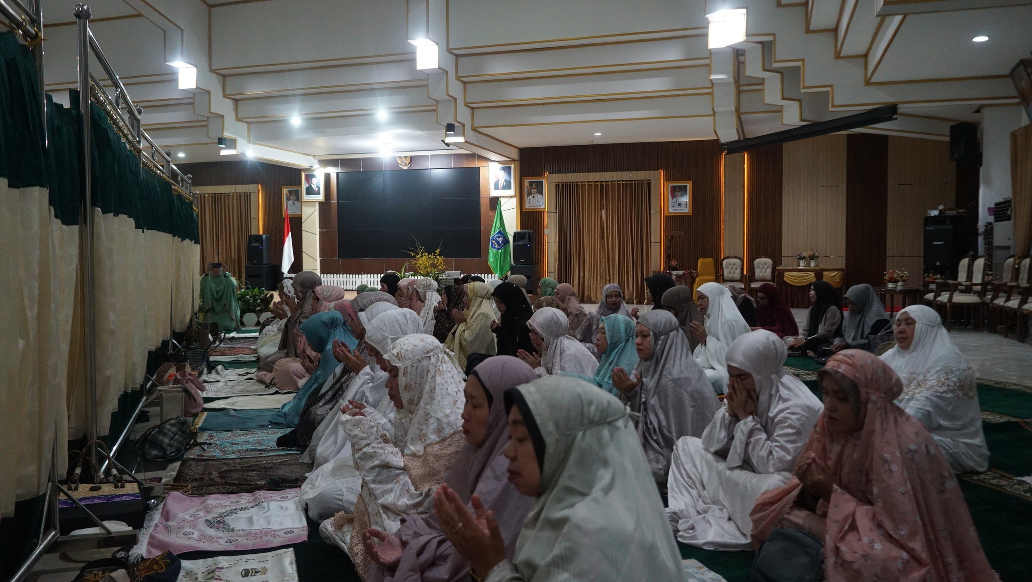 Ditengah suasana pendopo yang terasa khusyuk. Hadir dalam kegiatan tersebut Wakil Ketua TP PKK Kab. HSS Hj. Misnawati Suriani, Ketua Dharma Wanita Persatuan Kab. HSS Ir. Elyani Yustika Muhammad Noor, para istri Forkopimda, kepala OPD, serta warga sekitar Lorong Bupati.