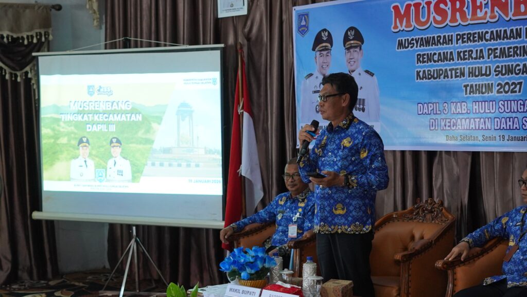 Wakil Bupati Hulu Sungai Selatan (HSS) H. Suriani, S.Sos., M.AP menghadiri Musyawarah Perencanaan Pembangunan (Musrenbang) Kabupaten HSS tingkat kecamatan tahun perencanaan 2027 yang digelar di Aula Kantor Kecamatan Daha Selatan, Senin (19/01).
