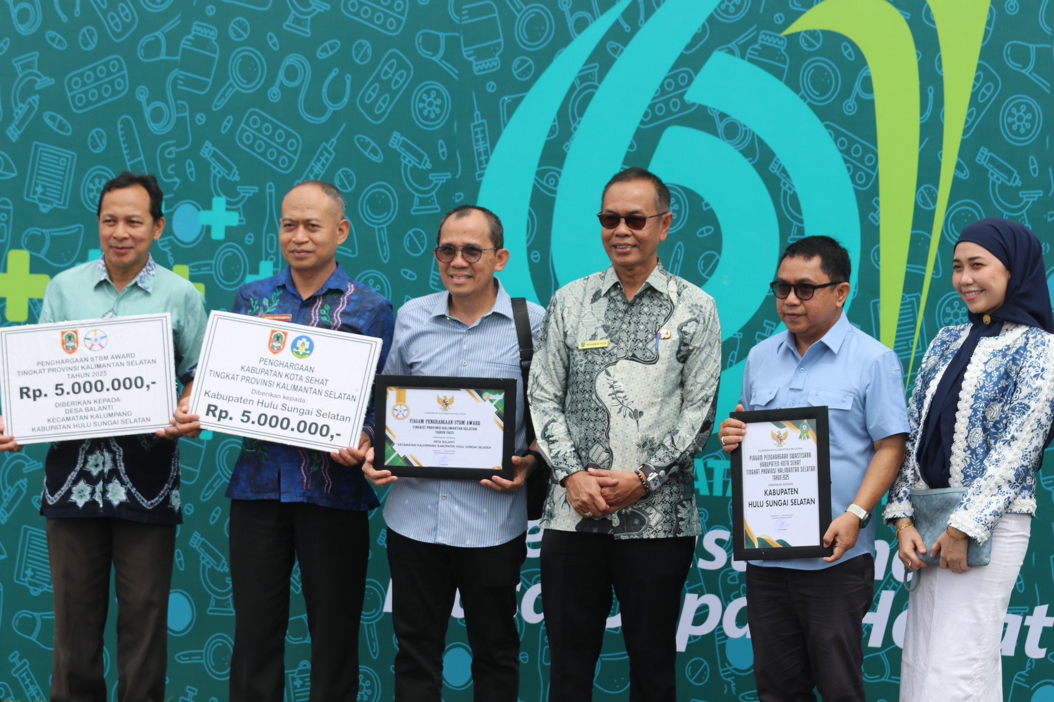 “Alhamdulillah, hari ini kami bersama Kepala Bappelitbangda dan jajaran Dinas Kesehatan Kabupaten HSS menerima penghargaan Kabupaten/Kota Sehat tingkat Provinsi Kalsel. Tahun ini Kabupaten HSS memperoleh penghargaan kategori Swastisaba, dan ini merupakan prestasi luar biasa hasil kerja keras seluruh jajaran Dinas Kesehatan serta OPD terkait. Kami juga bersyukur Desa Balanti Kecamatan Kalumpang turut meraih STBM Award tingkat provinsi,” ujarnya.