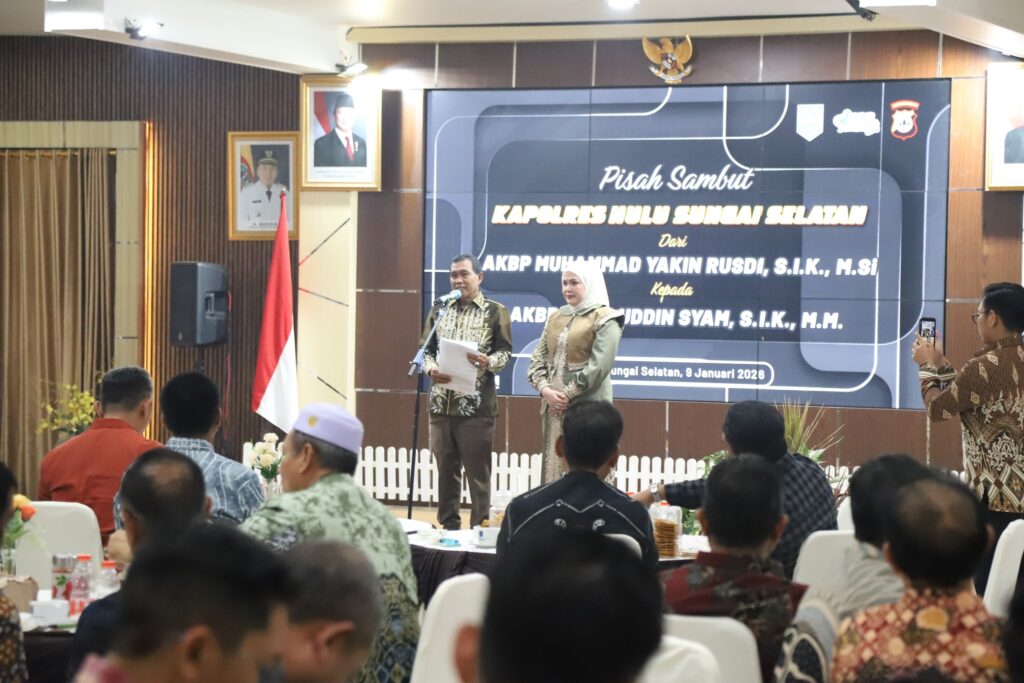 Bupati Hulu Sungai Selatan (HSS) H. Syafrudin Noor, S.E., S.Sos. menghadiri acara Pisah Sambut Kapolres Hulu Sungai Selatan dari AKBP Muhammad Yakin Rusdi, S.I.K., M.Si. kepada Kapolres baru AKBP Awaluddin Syam, S.I.K., M.M., yang digelar di Pendopo Kabupaten Hulu Sungai Selatan, Jum’at malam (09/01/2026).