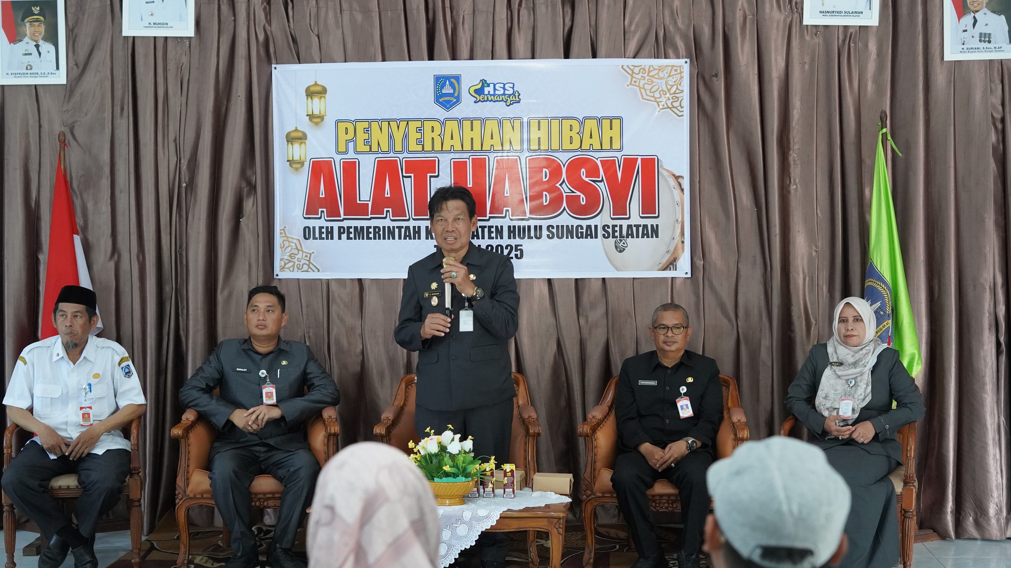 Pemerintah Kabupaten Hulu Sungai Selatan (HSS) melalui Dinas Pendidikan dan Kebudayaan Kabupaten HSS menyerahkan bantuan alat perlengkapan Habsy bagi kelompok seni dan keagamaan di wilayah Tiga Daha. Kegiatan penyerahan bantuan tersebut dilaksanakan di Aula Kecamatan Daha Selatan, Rabu (31/12/2025).