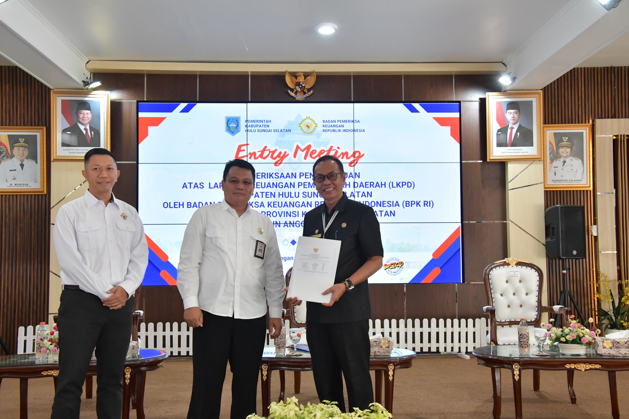 Pemeriksa Keuangan Republik Indonesia (BPK-RI) Perwakilan Provinsi Kalimantan Selatan dalam rangka Entry Meeting pemeriksaan pendahuluan atas Laporan Keuangan Pemerintah Daerah (LKPD) Kabupaten HSS Tahun Anggaran 2025. Kegiatan tersebut berlangsung di Pendopo Bupati Hulu Sungai Selatan, Senin (02/02/2026).