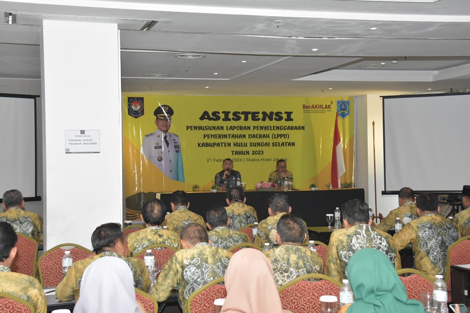 Penjabat Bupati HSS Drs H Hermansyah, MM didampingi Sekretaris Daerah Kab HSS Drs H Muhammad Noor, MAP Memimpin Rapat Koordinasi Pemkab HSS bulan Februari tahun 2024, bertempat di Hotel Shalva Hotel, Kebun Kacang Jakarta, Rabu (21/02/24).